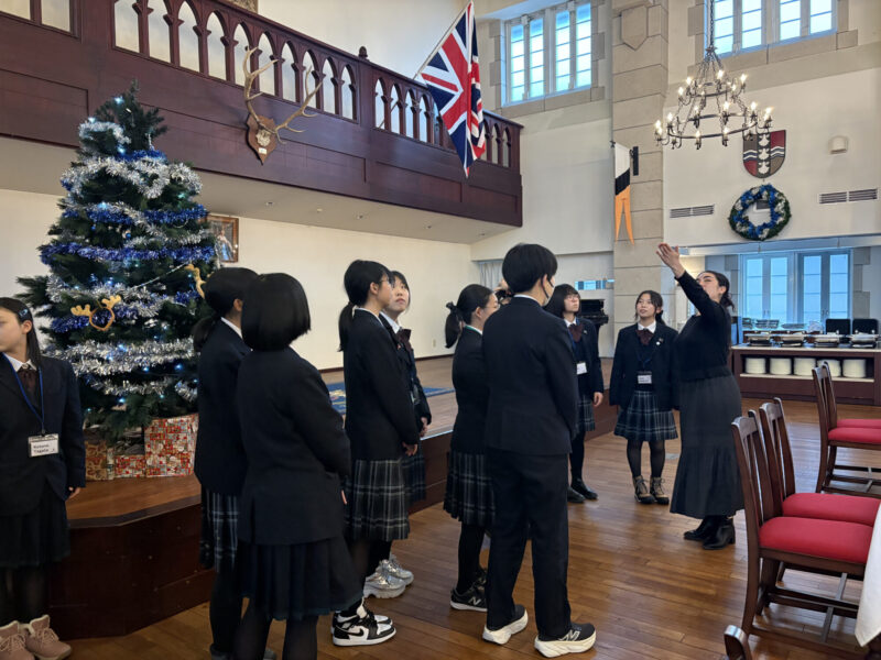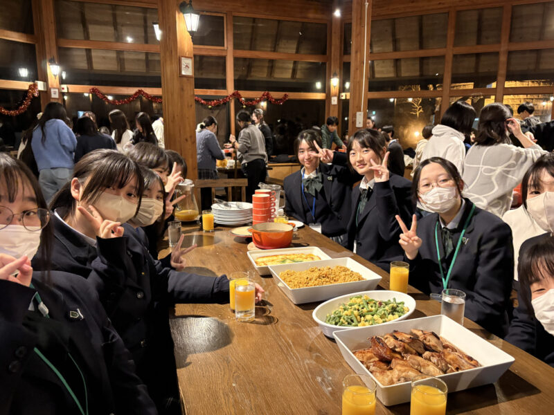 12月24日(水)から26日(金)まで、恒例のブリティッシュヒルズでの語学研修が行われています。今年は、中2〜高1の29名が参加しました。学ぶ環境、食事、クリスマスイルミネーションなど魅力が多く、リピーターの生徒も複数います。参加者は皆、積極的にLessonに参加し、Dinner後も様々なアクティビティを楽しんでいます。