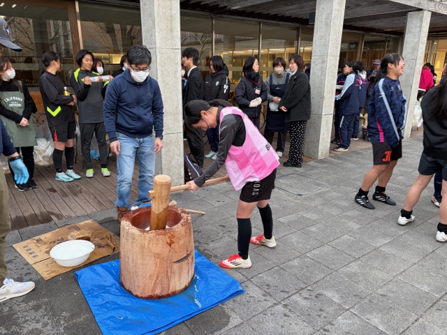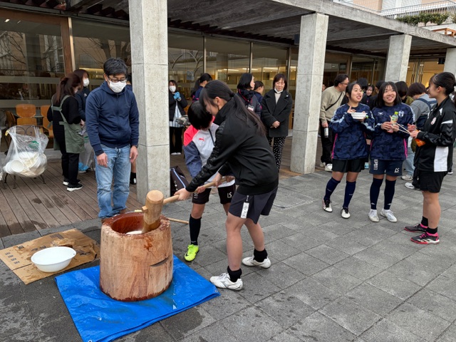 1月12日の成人の日、中高サッカー部にて「餅つき祈願」を行いました。保護者会による豚汁の炊き出しに加え、OG会からは寄贈された新しいサッカーゴールの組み立てが行われました。また、バス運行を担当されている川口さんのご協力で餅つきの準備も整い、会場は大いに賑わいました。 在校生をはじめ、4月からの入学を希望する小6・中3生、そして成人式を終えたOGたちに豚汁と餅が振る舞われ、全員で2026年のさらなる躍進を祈願しました。